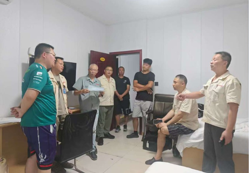 慰問過程中,劉總反復(fù)叮囑大家注意勞逸結(jié)合、科學(xué)安排作業(yè)時間,確保高溫天氣下的身體健康。特別強調(diào)車隊要嚴格落實高溫應(yīng)急預(yù)案,合理調(diào)整戶外作業(yè)時段,避免中暑事件和安全事件發(fā)生。檢查了試車隊的住宿防火、路試車輛、試車員個人防護、應(yīng)急防暑物資等。慰問檢查結(jié)束后,邀請大家共進午餐。